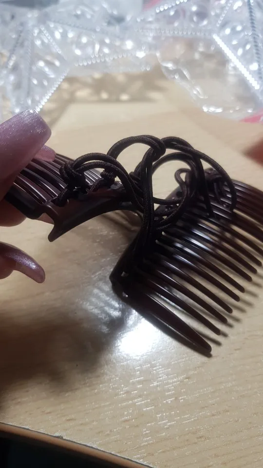 4. Push the teeth of the second comb into your hair, towards your head, to interlock the combs and secure the style.