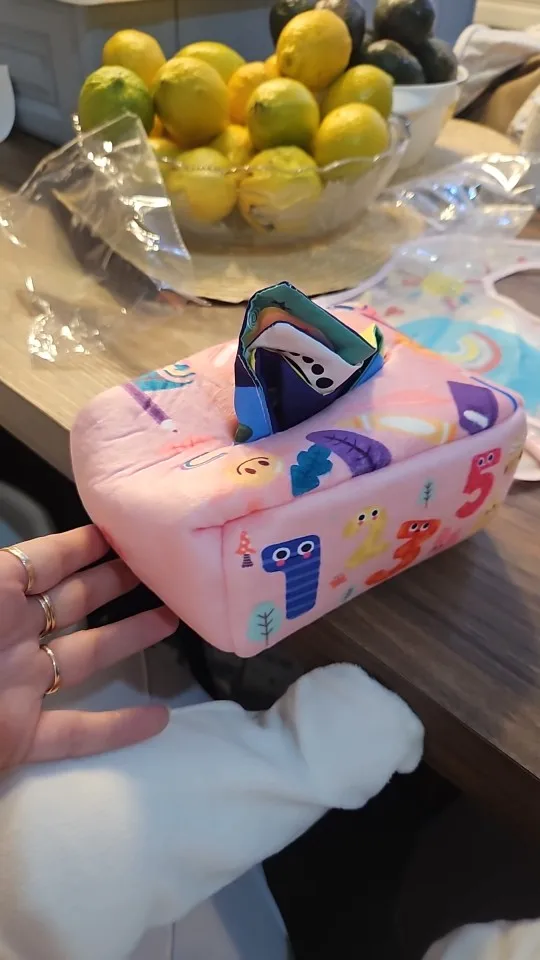 COLORFUL & CRINKLY: The tissue box toy is bright and colorful, and each side has a different pattern design, introduce your baby to new textures and sounds with the different types of fabric in this Montessori toy. And also these tissues have crinkly sounds to spark a baby’s curiosity.