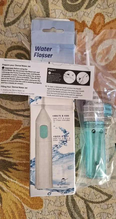 The manual high-pressure water toothpick offers a gentle yet effective way to remove plaque and food particles.