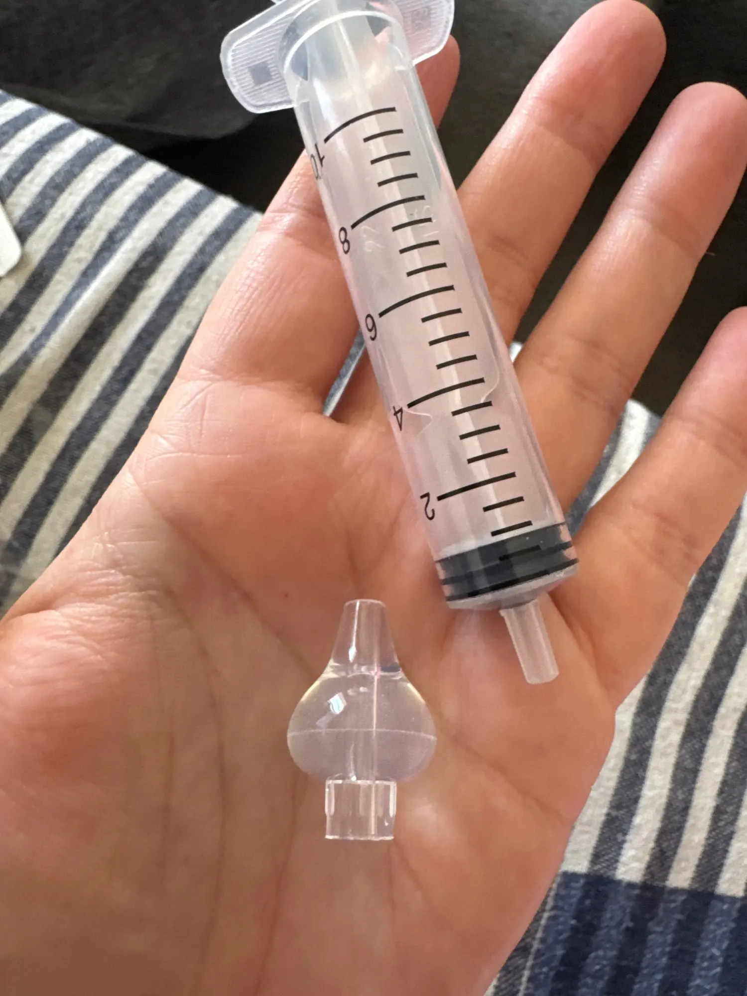 - Clean: Squeeze the mucus onto a tissue and rinse the aspirator thoroughly with warm, soapy water.